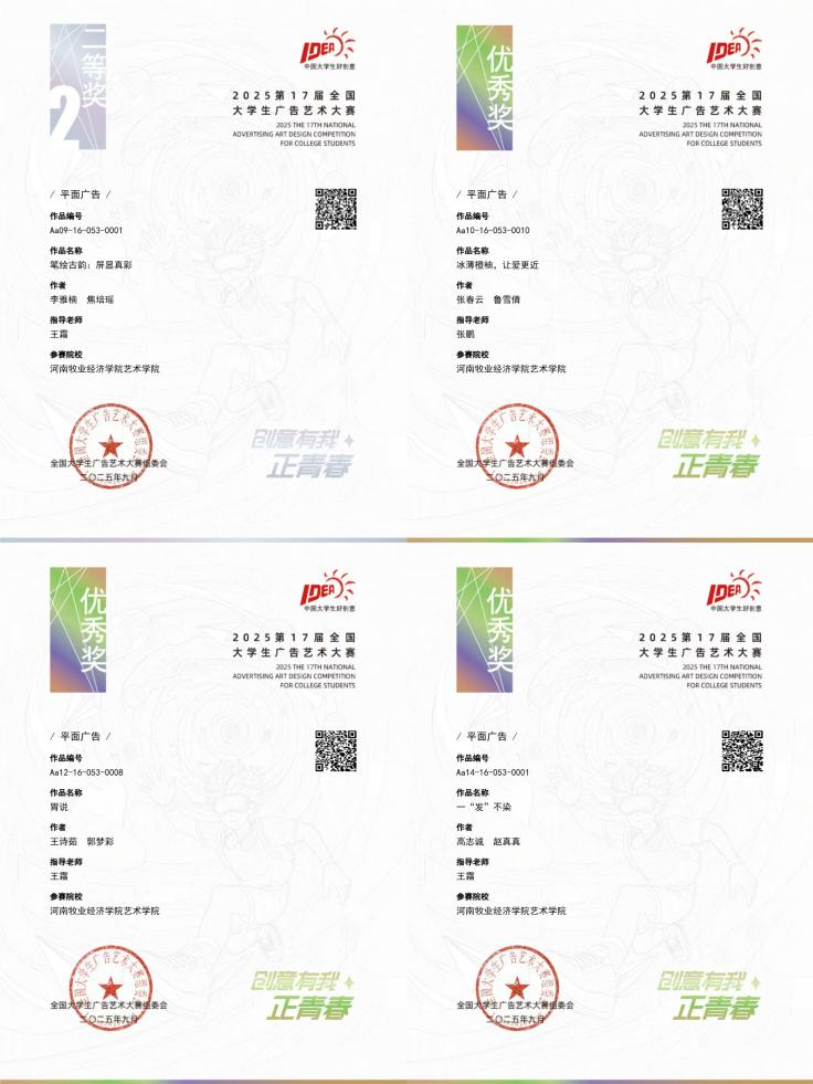 此次艺术学院在大广赛中取得的优异成绩,不仅是对学子专业能力的充分肯定,也彰显了学校在创新型、实践型人才培养方面的显著成效。未来,学院将继续坚持以赛促学、以赛促教,助力更多学子在创意舞台上实现梦想、成就精彩。