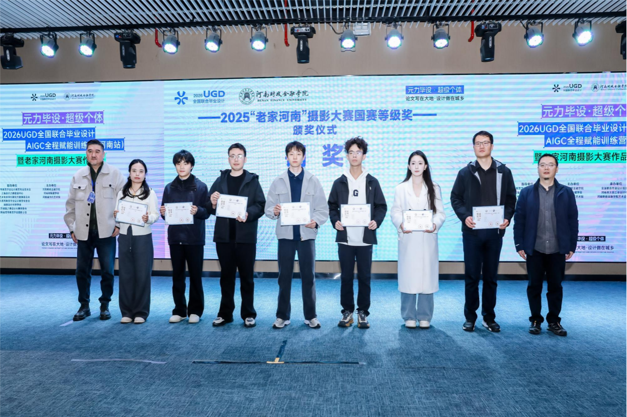 开幕式上,我校艺术学院院长张鹏作为特邀嘉宾出席,并为2025“老家河南”摄影大赛国赛等级奖获奖代表颁奖。同时,艺术学院李好敏、卞卡等9位教师因在2025届全国联合毕业设计指导工作中贡献卓著,荣获“UGD全国联合毕业设计指导教师特别贡献奖”,这一殊荣不仅是对获奖教师个人能力的肯定,更是对我校设计教育与实践教学成果的广泛认可。