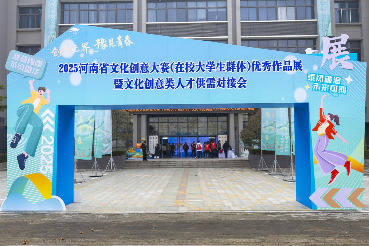 为深化高质量就业服务体系建设,有效促进2026届毕业生高质量就业,进一步促进校地对接、深化校企合作,提升人才供给与市场需求的匹配度,2025河南省文化创意大赛(在校大学生群体)优秀作品展暨文化创意类人才供需对接会于12月19日在我校龙子湖校区成功举办,省教育厅、省委宣传部、省委网信办、省文旅厅等相关处室负责同志,副校长马珺在招生就业指导中心和学院领导陪同下莅临现场指导。